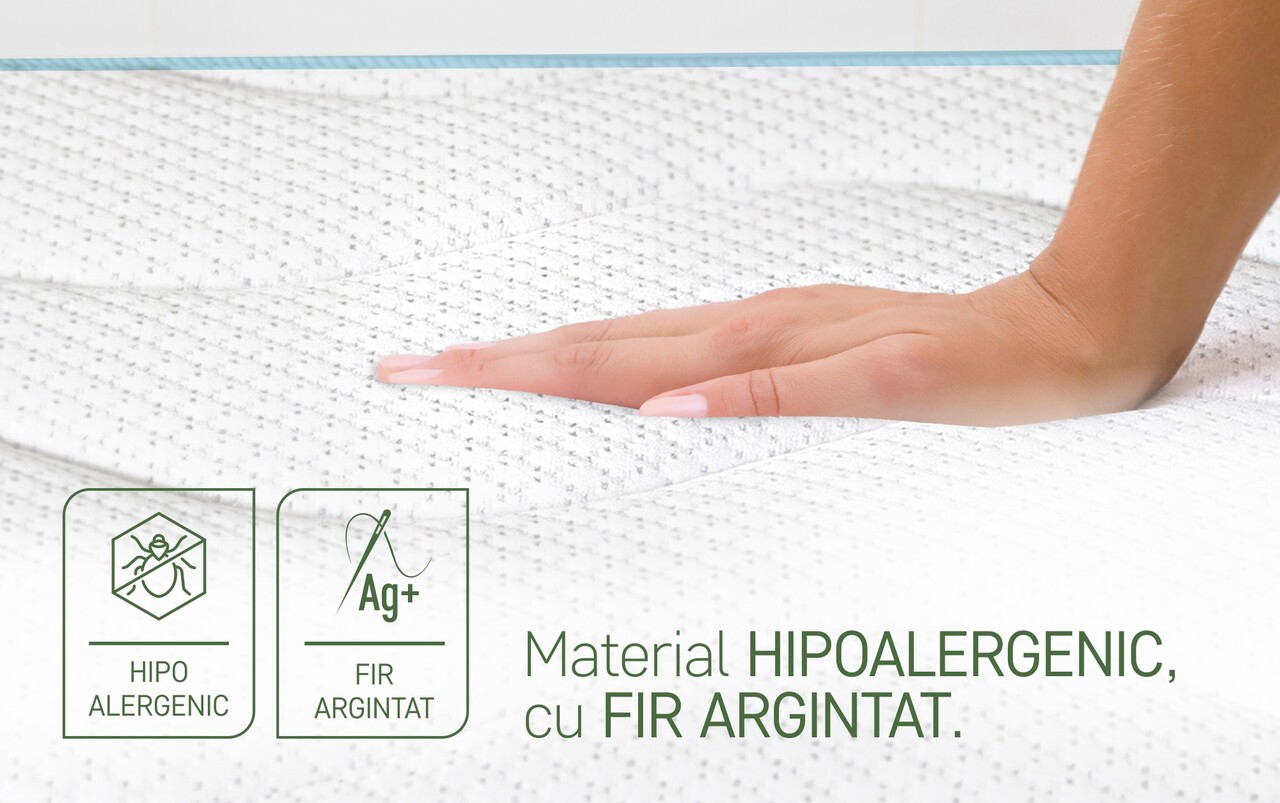 Husa sa din material textil de calitate superioară adaugă un plus de rafinament și respirabilitate, contribuind la menținerea unei temperaturi optime pe tot parcursul somnului.