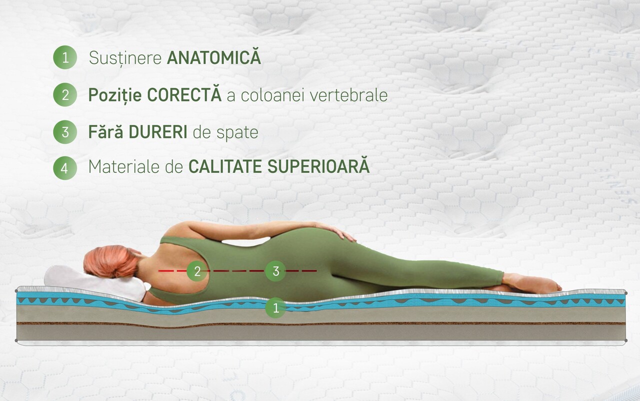 - Recomandată pentru toate pozițiile de dormit – pe spate, pe lateral sau pe stomac