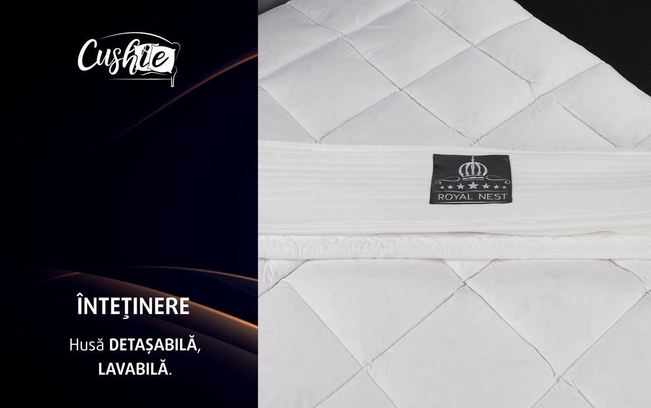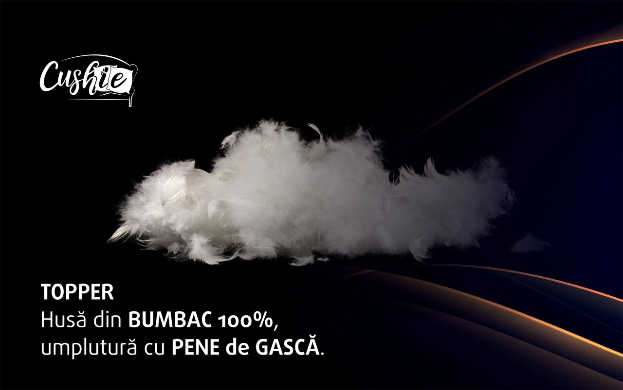 Proiectată pentru a oferi un suport perfect și un nivel de confort excepțional, aceasta dispune de un topper din pene de gâscă care oferă un confort deosebit, combinând moliciunea cu un suport ferm, pentru un somn odihnitor. Designul său permite o circulație optimă a aerului, menținând temperatura corpului constantă pe tot parcursul nopții. Ideal pentru a reduce punctele de presiune, acest topper asigură o senzație de lux și confort.