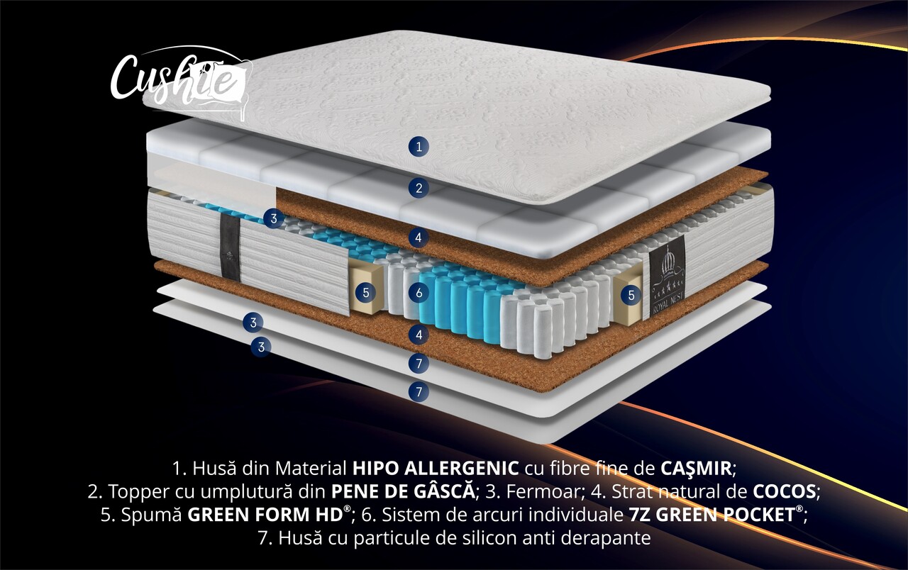 Descoperă confortul suprem cu salteaua Royal Nest – alegerea perfectă pentru un somn odihnitor și răsfățat. Construită din materiale de cea mai înaltă calitate, Royal Nest îți oferă suportul ideal transformând fiecare noapte într-o experiență regala de confort. Indiferent dacă preferi o saltea mai fermă sau mai moale, Royal Nest îți garantează un somn odihnitor, pentru a te trezi în fiecare dimineață plin de energie și prospețime. Alege Royal Nest și oferă-ți cel mai bun somn din viața ta!