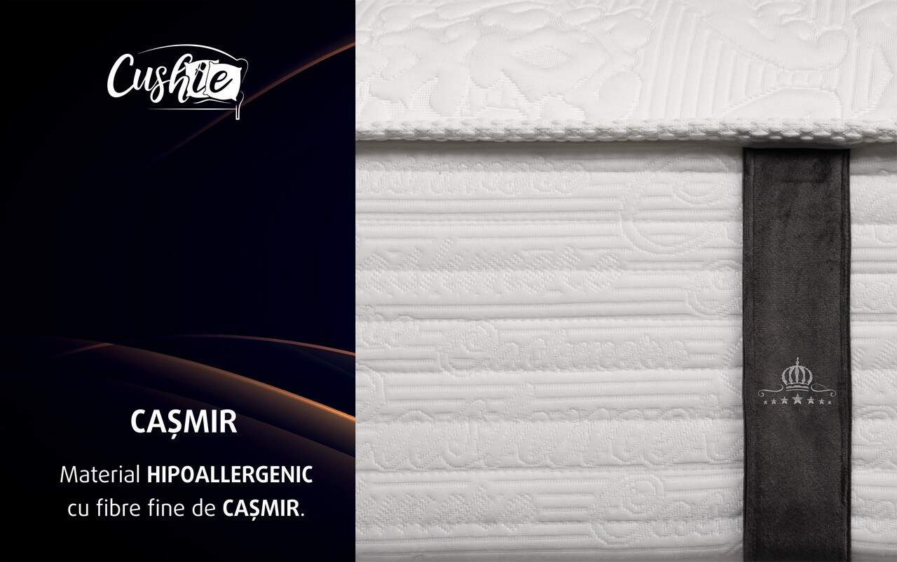 Husa saltelei este realizată dintr-un material premium, ce combină textura fină și delicată a casmirului cu durabilitatea și confortul altor fibre premium. Casmirul, cunoscut pentru finețea și căldura sa naturală, adaugă un strat suplimentar de confort și răsfăț, oferind o senzație de moliciune unică la atingere. Datorită proprietăților sale de respirație, materialul permite o circulație optimă a aerului, contribuind la un somn odihnitor și fără disconfort. In plus, pe partea inferioară, husa este prevăzută cu particule anti-alunecare din silicon, care garantează o stabilitate maximă.